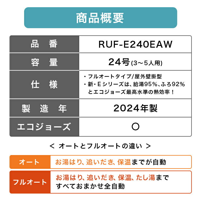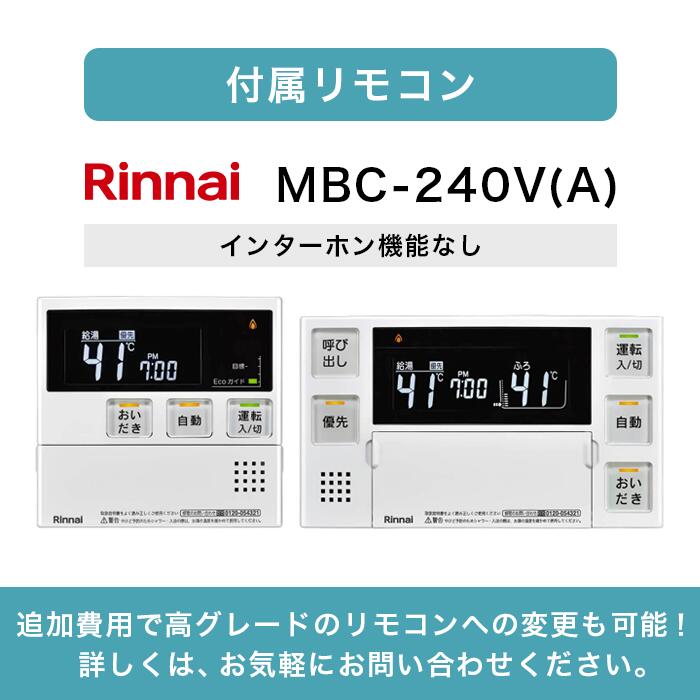 ※今ならショップレビューで商品保証5年無料※【最安値】RUF-E240EAW 工事費込み MBC-240V(A)リモコンセット ガス給湯器 人気 おすすめ リンナイ Rinnani 24号 フルオート 屋外壁掛型 エコジョーズ あす楽 壁掛けタイプ 安い 給湯器 cools 24号壁掛フルオート
