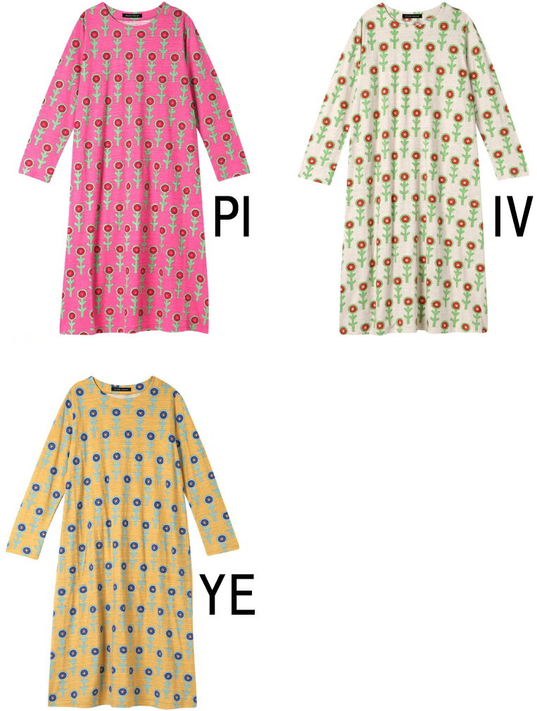 30%OFF【送料無料】ワコール セール アツコマタノ 2025春<つぼみ柄>ロング袖・ロング丈(ふくらはぎ付近)ラウンドネック ワンピース(綿100%)HNX556