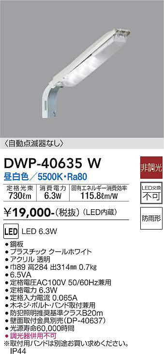 大光電機(DAIKO) DWP-40635W アウトドアライト 防犯灯 LED内蔵 非調光 昼白色 防雨形