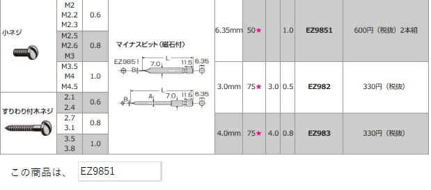 電設資材 パナソニック EZ9851 工具 マイナスビット6.35ミリ 2本組