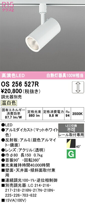 オーデリック OS256527R スポットライト 調光 調光器別売 LED一体型 温白色 プラグタイプ マットホワイト