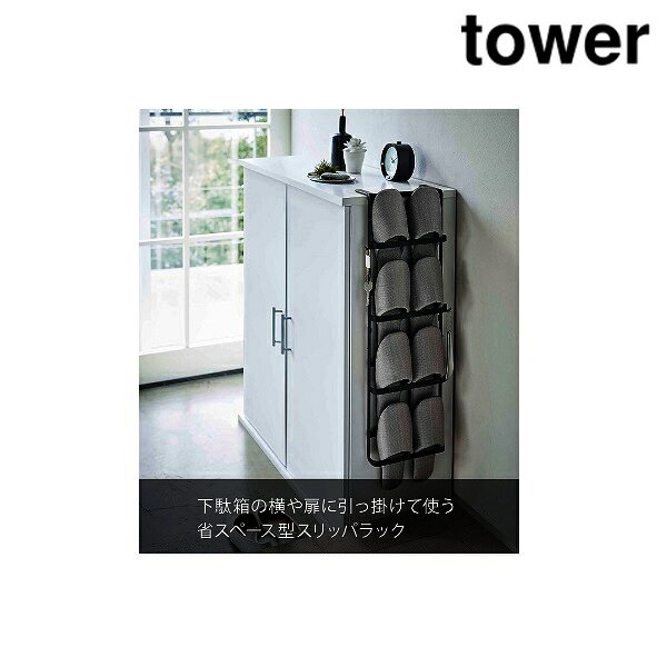 山崎実業 4895 下駄箱扉&引っ掛け式スリッパラック タワー ブラック