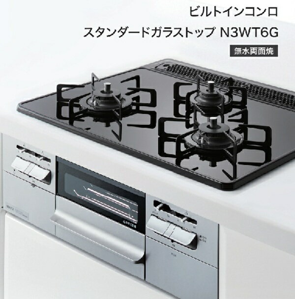 [在庫あり] ノーリツ [N3WT6G 都市ガス12A13A] ビルトインコンロ スタンダードガラストップ 60cm 3口 無水両面焼 ☆2【あす楽関東】
