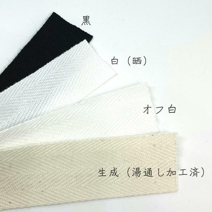 50m巻 綿スフ杉綾テープ 厚め 30mm 巾 1mm 厚 4色 ( 生成、白、オフ白、黒 )厚手 持ち手 伏せテープ 綿テープ コットンテープ 日本製
