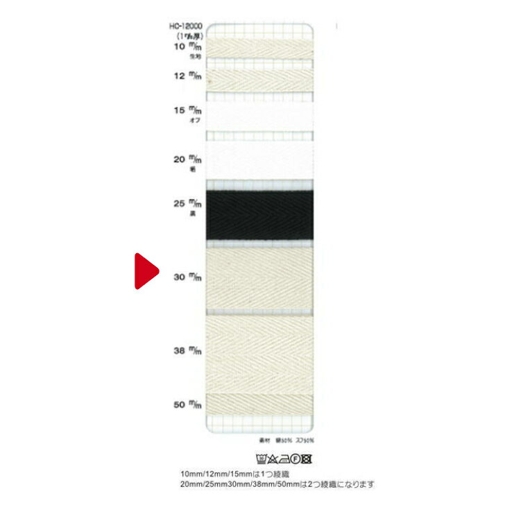 商品情報素材コットン50%スフ50%サイズ/巾30mmご購入時のご注意※出来る限り繋ぎ目なしでご用意しておりますが、在庫状況によっては25m+25mのように端数でのご用意となる場合がございます。予めご了承下さいませ。※生産時期・染色ロットにより色目やサイズが多少異なる事がございます。※ページ画面のお色と現物のお色具合が異なって見える場合もございます。予めご了承くださいませ。 在庫について一部商品の在庫を自社とウェブショップ(楽天市場)で共有しております。その為、ご注文を頂きました商品が稀に品切れをしている場合がございます。品切れ・納期がかかる場合は基本的にメールでご連絡しております。(ご返信がない場合はお電話にてご連絡させて頂きます)注文後の追加・同梱について一旦完了(ご購入完了)した注文には、「追加」でのご注文は承れません。新規のご注文(別のご注文・追加分)として、改めてご注文をお願い致します。※メーカー希望小売価格はメーカーカタログに基づいて掲載しています。50m巻 綿スフ杉綾テープ 厚め 30mm 巾 1mm 厚 4色 ( 生成、白、オフ白、黒 )厚手 持ち手 伏せテープ 日本製 業務用 反 販売 生地 オフ白 晒 黒 湯通し3cm手芸 テープ ハンドメイド 手作り 裁縫 バッグかばん 子供服 縫製 引っ掛け タオル掛け 上着掛け ストラップ 座布団 エプロン 三角巾 天然素材 綿素材 リサイクル 環境 SDGs コットン スフ ストラップ 手芸 靴紐 天然素材 クラフト 2