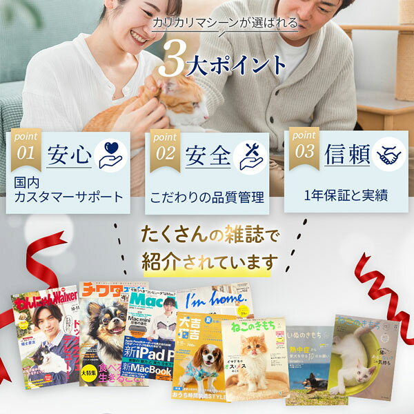 ※<キャンセル・返品(返金・交換)について>詳細はこちら 特徴1 いつでもどこでもスマホから「みまもる」「話せる」「ごはんをあげる」ことができる、スマホ連携型自動給餌器。 リアルタイムの給餌&会話ができて、録音ボイス給餌にも対応。 夜間撮影機能もついているので、お部屋が暗くてもくっきり。 帰りが遅くなる時、空腹による嘔吐が心配な時、決まった時間に決まった量をあげたい時、ちょっとした旅行や急な出張に適しています。 早朝起こされて寝不足という方にもオススメ! 災害時で帰宅困難な時や、急な入院で帰れないときも安心ですね。 特徴2 密封性がアップしました。 おいしさ長持ちでいつでもカリカリ! 乾燥剤ポケットを搭載し、開閉式の給餌口なのでフードを出し終わるとフードタンクの給餌口が閉じて密封します。 その他の特徴 ・いたずら防止対策も充実、フタのロックはスライドフックなので倒しても安心。抜けにくい安心のL字型ジャック。噛みちぎり防止対策の強化ナイロンコード。かわいいお手てで頑張っても入らない給餌口。 ・ネジなし設計なのでお手入れがラクラク。フードタンク全てのパーツが工具を使わずに取り出せます。解体して洗う⇒元に戻す、が簡単です。 ・簡単安心タイマー設定。決め時間に決めた量の食事をあげられるので、肥満予防ができ、元気に暮らすための健康ベースを作れます。遠隔操作で手動でちょこっとご褒美をあげることも♪ ・停電のときも安心、単一電池3本で給電可能。万が一の停電時やコードが抜けてしまったときは、自動的に電池から給電されます。 ・標準装備は5gプロペラ(同梱)と10gプロペラ(お届け時に装着)、広いお皿で食べやすく、洗うのもラクチンなステンレストレイ、フードを傷めない乾燥剤、たっぷりフードタンクは4.5L!(ドライフード・フリーズドライ併用化) ・こだわりの品質管理。カリカリマシーンはすべて、専門知識をもった熟練技術者による手作業で1つ1つ丁寧に組み上げ、高い品質と安全性を維持しています。 商品詳細 商品名:カリカリマシーンV2C/スマホ連動型自動給餌器 外寸法:約W240×H380×D317mm(フードトレイ設置時) 容量:約4.5L(ドライフード約1.5~2.5kg) 重量:約2.6kg 材質:本体:ABS樹脂/トレイ:ABS樹脂、ステンレス/電源:噛みちぎり防止カバー付きAC-DCアダプター (5V2A) ※本製品は電源コードの噛みちぎりによる危険対策品ですが100%の安全を保証するもので はありません。 緊急用電源:単一アルカリ乾電池 (3本) ※任意でご使用ください。電池のみの場合はWi-Fi機能は使えません。 定格出力:2.5W カメラ:F2.0:160°超広角レンズ搭載FHDカメラ 夜間撮影機能「ナイトビジョン」搭載 適応温度: 5°C~50°C プロペラ: <10g 用プロペラ>※お届け時に装着 1 ポーション 約10g単位での給餌 1 回 約10g〜100g までの給餌量設定が可能 <5g 用プロペラ>※同梱 1 ポーション 約5g単位での給餌 1 回 約5g〜50gまでの給餌量設定が可能 フードの種類:5〜15mmのドライタイプまたはフリーズドライタイプのドッグフードキャットフード ※5gプロペラ使用時は5〜12mm ※フリーズドライフード単体ではご使用いただけません。必ずドライフードとの併用をお願いします。 ※缶詰フードやウェットフード、半生フード、スナックは対応外。故障の原因となりますので絶対使用しないでください。 ※製品改良のため、デザイン・仕様等予告なしに変更する場合があります。ご了承ください。 ※本製品をご利用いただくためには、スマートフォンおよび設置場所にWi-Fi環境が必要です。 ※アプリ対応OS: android ver.5.0以上IOS1.0以降/iPhone、iPadに対応 対応Wi-fi:2.4GHz 推奨環境:10Mbps以上カリカリマシーンV2C 猫 犬 自動給餌器 カメラ付き スマホ操作 5gプロペラ付き 自動餌やり機 給餌器 餌 エサ えさ ペット 乾燥剤 密閉 ロック 蓋が閉まる 洗える 見守りカメラ スマホ連動 動画を再生するにはvideoタグをサポートしたブラウザが必要です。 特徴1 いつでもどこでもスマホから「みまもる」「話せる」「ごはんをあげる」ことができる、スマホ連携型自動給餌器。 リアルタイムの給餌&会話ができて、録音ボイス給餌にも対応。 夜間撮影機能もついているので、お部屋が暗くてもくっきり。 帰りが遅くなる時、空腹による嘔吐が心配な時、決まった時間に決まった量をあげたい時、ちょっとした旅行や急な出張に適しています。 早朝起こされて寝不足という方にもオススメ! 災害時で帰宅困難な時や、急な入院で帰れないときも安心ですね。 特徴2 密封性がアップしました。 おいしさ長持ちでいつでもカリカリ! 乾燥剤ポケットを搭載し、開閉式の給餌口なのでフードを出し終わるとフードタンクの給餌口が閉じて密封します。 その他の特徴 ・いたずら防止対策も充実、フタのロックはスライドフックなので倒しても安心。抜けにくい安心のL字型ジャック。噛みちぎり防止対策の強化ナイロンコード。かわいいお手てで頑張っても入らない給餌口。 ・ネジなし設計なのでお手入れがラクラク。フードタ