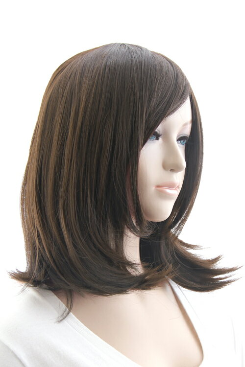 ミディアム 【ディープブラウン】【ウィッグネット付】コスプレウィッグ セミロング カラー 茶 髪 ウイッグ 安い フリーサイズ 耐熱 (mi-m4)