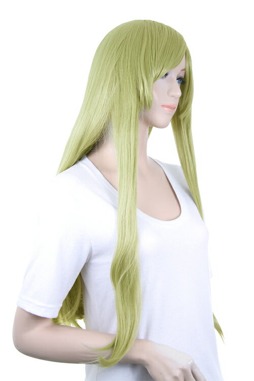 ロング ストレート 77cm【スプリンググリーン】【ウィッグネット付】コスプレウィッグ 耐熱 コス パーティー コスチューム 変装 仮装 アニメ 学園祭 新年会 結婚式(lo-t0532)