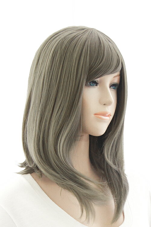 ミディアム 【アッシュグレー】【ウィッグネット付】コスプレウィッグ セミロング 安い 耐熱(mi-bs0055)