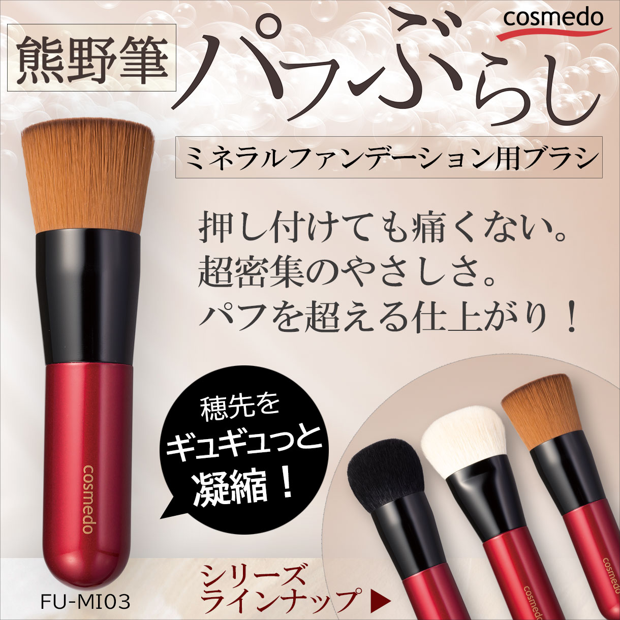 商品情報広告文責匠の化粧筆コスメ堂(株式会社ゼニス)品名熊野筆 パフぶらしシリーズ ミネラルファンデ用 PBT フラット フェイスブラシ品番FU-MI03生産国日本製(広島県熊野町)材質・穂先=山羊毛100%・金具=アルミ・軸(ハンドル)=天然木サイズ・全長=約115mm・毛丈=約27mm・金具丈=約33mm・ハンドル丈=約55mm\ファンデーションがピタッと密着/ 熊野筆 メイクブラシ ミネラルファンデ用 PBT フラット フェイスブラシ パフぶらしシリーズ 日本製(パウダーファンデーションブラシ ミネラルファンデーション フェイスパウダーブラシ 化粧筆 化粧ブラシ おすすめ 誕生日 熊野化粧筆) ミネラルファンデ(MMU)専用ブラシ。フラット穂先がフェイスパウダーをしっかり密着。毛量たっぷり超密集穂先。【パウダーファンデ お誕生日 プレゼント パウダーブラシ お手入れ簡単PBT】 ■ファンデーションがピタッと密着誰でも使いやすく、自然な仕上がり.パフ派の方でも簡単に使え、ファンデが肌にしっかり密着。ふんわり軽く、ナチュラルに仕上がります。■高密度&高品質な穂先通常のPBT毛だけでは出せないふんわり感を実現するため、クランプ(ちぢれ)加工など数種類の原毛をブレンド。人工毛とは思えないほどやさしい肌触りです。天然毛に比べて毛抜けもなく、お手入れも簡単です。■安定感のあるハンドル設計太めで短めのハンドルが手にしっかりフィット。光沢のあるメタリックレッドが華やかさも演出。■持ち運びにも便利コンパクトサイズながら穂先は通常サイズ。ポーチにもすっと収まり、外出先でも活躍。■日本製ならではの完成度金具・軸まで国内製造にこだわり、海外製とは一線を画す品質です。■通常のフェイスブラシとしてもミネラルファンデーションだけでなく、一般的なフェイスブラシとしても、もちろんお使いいただけます。■熊野筆とは?■広島県熊野町で作られる筆で、日本製筆の約8割を占めます。江戸時代からの技術を活かした高品質な化粧筆は、国内外で高く評価され、2011年にはなでしこジャパンにも贈られ話題に。「熊野筆」は商標登録され、認定メーカーのみが使用を許されています。【店舗内検索用キーワード】メイクブラシ 熊野筆 フェイスブラシ チークブラシ パウダーブラシ 化粧筆 誕生日プレゼント 誕生日 プレゼント 女性 熊野筆フェイスブラシ 化粧ブラシ ファンデーションブラシ ファンデブラシ MMU MMUファンデ MMUファンデーション 携帯用 持ち歩き 持ち運び 化粧直し お直し フェイスパウダー ブラシ 日本製 フェイスパウダーブラシ コスメ堂 メイク 熊野化粧筆 パウダーファンデーションブラシ 熊野筆メイクブラシ プレゼント ブランド パウダー 女性 高密度 密集 化粧 熊野 メイク筆 cosmedo デパコス ギフト コスメブラシ メイクアップブラシ コスメティックブラシ 熊の筆 クマの筆 くまのふで kumanofude PBT 化繊 ナイロン毛 ナイロン 合成繊維 おすすめ おススメ ランキング 化粧ふで プレストパウダー 人気 コンパクト オススメ リンパ マッサージ リンパマッサージ メーカー makeup brush 持ち運び 持ち歩き ほお紅 お直し 外出 外出先 匠の化粧筆 ヤギ毛 山羊毛 おしろい フェースブラシ ミネラルファンデーション ミネラルファンデ お手入れ簡単 化粧品 フラット ファンデーション cosmed堂 ぱふブラシ ルースパウダー 広島熊野筆 メイク道具 5