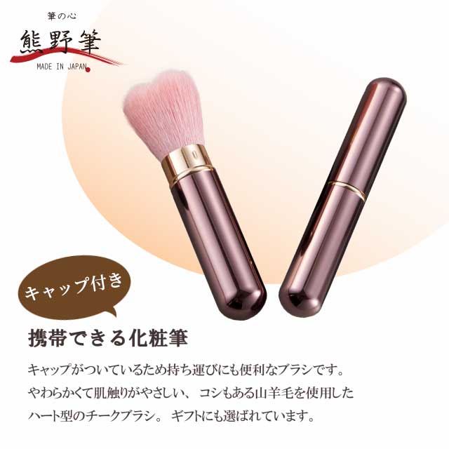 【アウトレット】熊野筆メイクブラシ 筆の心 携帯用ハートモバイル チークブラシ キャップ付き(山羊毛+ポリエステル)日本製(お買い得 ファンデーション おしろい 訳あり わけあり ワケアリ 激安 安い 格安 コスパ 熊の筆 化粧ブラシ セール SALE) 【おひとり様3本まで】