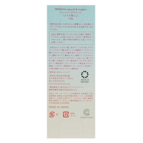 【ポイント10倍】【FRENAVA natural&organic】クレンジングクリーム | フレナバ ナチュラル&オーガニック クレンジング ミルク クリーム メイク落とし 化粧落とし 洗顔 スキンケア 乾燥肌 敏感肌 保湿 化粧品 毛穴 角質 レディース メンズ