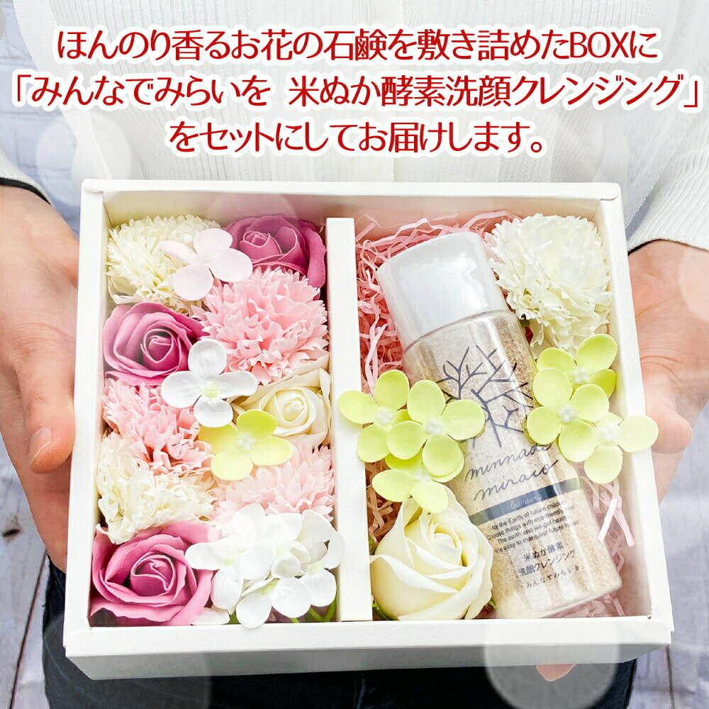 みんなでみらいを 無添加 米ぬか酵素 洗顔クレンジング 70g ソープフラワーBOXセット プレゼント ギフト 贈り物 お花の石鹸 枯れないお花 母の日 バースデープレゼント 誕生日プレゼント 記念日 記念