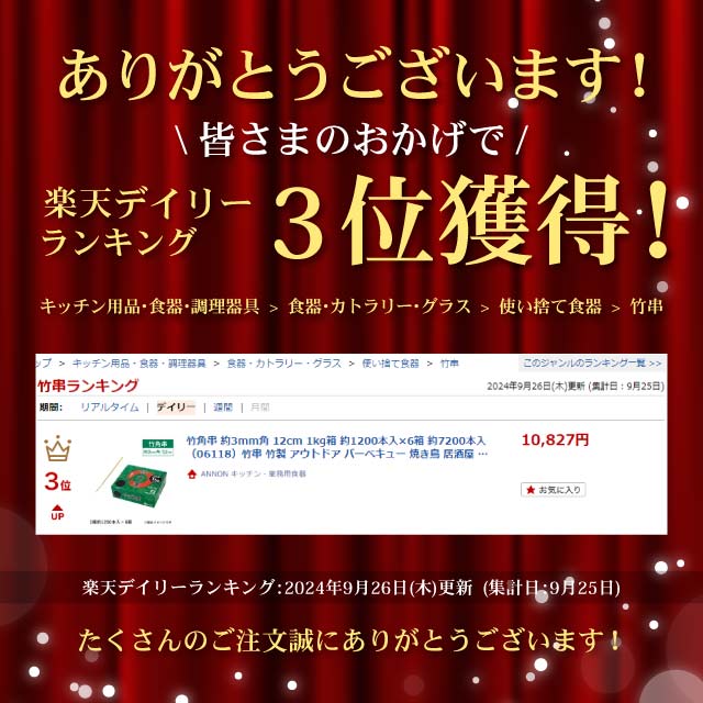 【お得なクーポン配布中!】竹角串 約3mm角 12cm 1kg箱 約1200本入×6箱 約7200本入(06118)竹串 竹製 アウトドア バーベキュー 焼き鳥 居酒屋 飲食店 業務用 使い捨て まとめ買い 店舗用品 料理演出