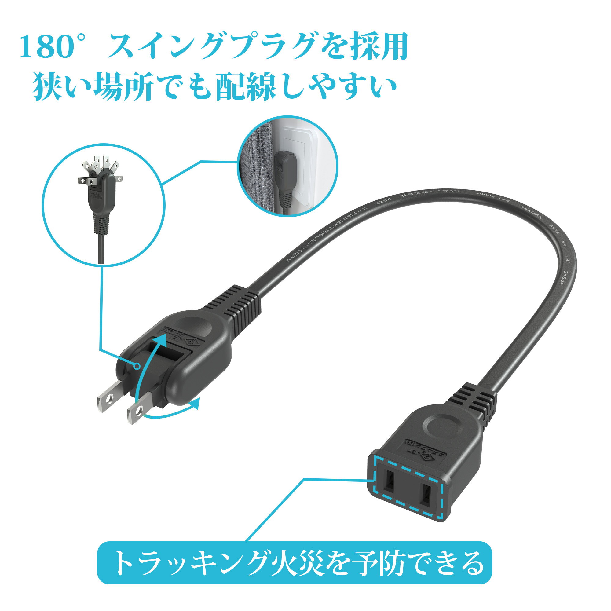 【おすすめ】電源コード 電源延長コード 短い 0.3m 1個口 5本 延長ケーブル ブラック 電源プラグ変換 PSE認証 エレコム 電源タップ 180度スイングプラグ 絶縁キャップ