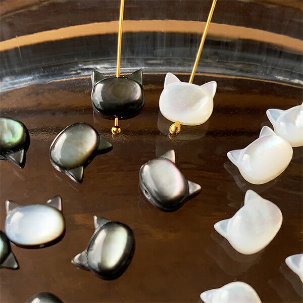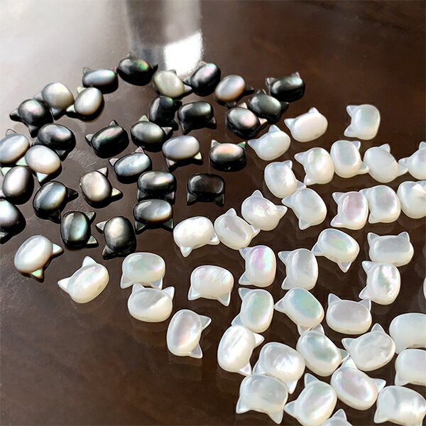 ネコ好きさんにはたまらない!こちらは耳がピンと立った子猫タイプになります。親子ネコで揃えると、とても微笑ましいデザインが出来そう♪ハンドカットなので1つ1つ個性があり、とっても可愛いです♪ネックレスにしたりピアスにしたり、揺れるたびにシェルの光沢が美しくと光ります。ブラックシェルの特徴で、反面がホワイトや両面ブラックなど、1つずつ違います。セレクトはできませんので予めご了承願います。【天然石 ビーズ 淡水パール パーツ】テグスやワイヤーを穴に通して使います