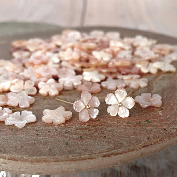 やさしさあふれるさくらモチーフ。ピアスやネックレスに丁度良い小さめサイズはとても繊細で可憐なイメージ。ピンクカラーは濃淡があり、ペアで使う等、色を合わせたい場合は、ご注文の際、ご要望欄に書き込み下さい。なるべくご要望にお応えしたいと思います。50セットは色のセレクトはできません。予めご了承ください。【天然石 ビーズ 淡水パール パーツ】テグスやワイヤーを穴に通して使います
