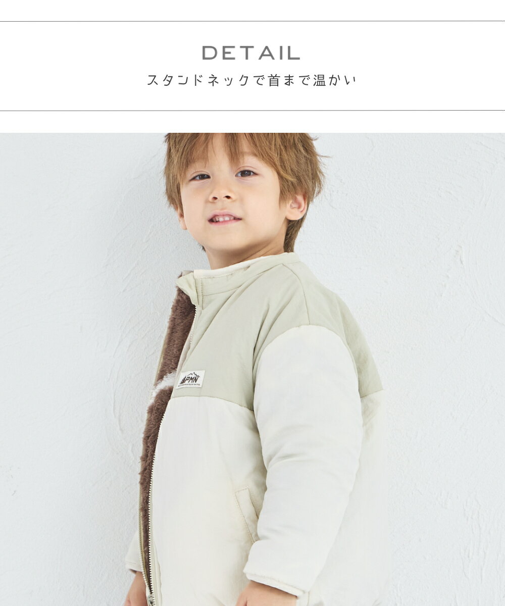 1枚で2度可愛い、ボアとナイロンの万能リバーシブルジャケット。 中わた入り&スタンドネックで首元まで温かい1枚。 胸元のワンポイントタグがアクセントです。 まるでマシュマロのような軽くてふんわりした素材は、手洗いもできる優れもの◎ 温かくて可愛くて便利な万能アウターは、この冬の必須アイテムです。 モニター・環境等により実際の商品と色味が多少異なって表示される場合がございます。 また、生産時期により色味が若干異なる場合がございます。予めご了承ください。1枚で2度可愛い、ボアとナイロンの万能リバーシブルジャケット。中わた入り&スタンドネックで首元まで温かい1枚。胸元のワンポイントタグがアクセントです。まるでマシュマロのような軽くてふんわりした素材は、手洗いもできる優れもの◎温かくて可愛くて便利な万能アウターは、この冬の必須アイテムです。モニター・環境等により実際の商品と色味が多少異なって表示される場合がございます。また、生産時期により色味が若干異なる場合がございます。予めご了承ください。 ●サイズ90cm(総丈39cm 肩幅38cm 身幅42cm そで丈26cm)100cm( 総丈42cm 肩幅40cm 身幅44cm そで丈30cm)110cm(総丈45cm 肩幅42cm 身幅46cm そで丈34cm)120cm(総丈48cm 肩幅44cm 身幅48cm そで丈38cm)130cm(総丈51cm 肩幅46cm 身幅50cm そで丈42cm)140cm(総丈55cm 肩幅48.5cm 身幅52.5cm そで丈46cm)150cm(総丈59cm 肩幅51cm 身幅55cm そで丈50cm) ●素材表地_ナイロン100% 裏地_ポリエステル100% 中わた_ポリエステル100% ●ポケットあり(胸ポケット1つ、両サイド) ●伸縮性なし ●透け感透けない ●裏地なし(リバーシブル仕様) ●クリーニング手洗い可 ●生産国中国 【アイテム/ジャンル/タイプ】 ナチュラル オシャレ シンプル きれいめ キレイ かわいい 大人かわいい 大人可愛い 大人っぽい おしゃれ プチプラ 親子お揃い お揃い リンク リンクコーデ ママリンク ママリンクコーデ 韓国子供服 韓国 キッズ トドラー 幼稚園 保育園 小学校 フェミニン ガーリー 通園 通学 おでかけ 新作