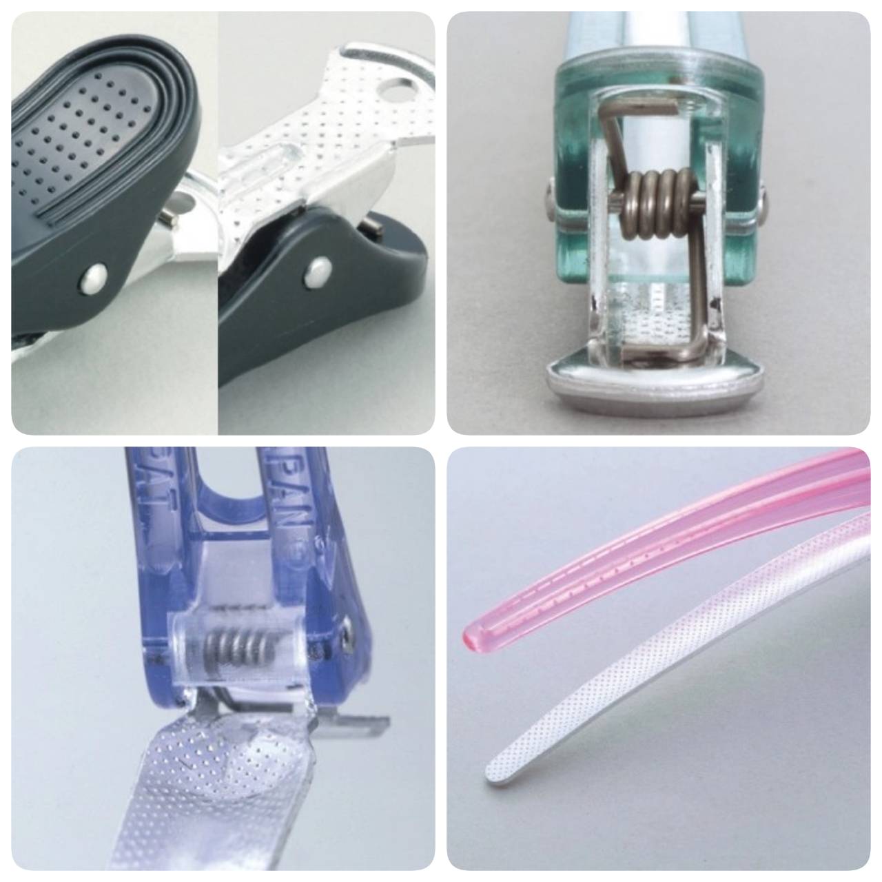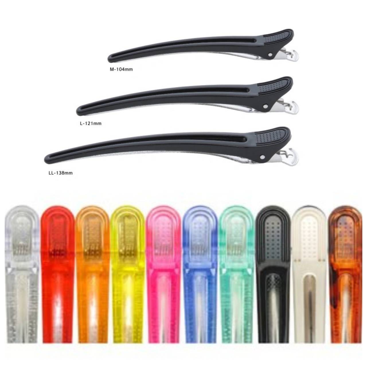 商品情報 商品名 Eクリップ サイズ 下記よりお選びいただけます。 ・Mサイズ:約104mm ・Lサイズ:約121mm ・LLサイズ:138mm カラー 下記からお選びいただけます。 ・クリア ・ブラック ・ピンク ・グリーン ・ブルー ・レッド ・オレンジ ・イエロー ・ホワイト ・べっ甲 内容量 ・Mサイズ:10本 ※「ホワイト」「べっ甲」は8本 ・Lサイズ:10本 ※「ホワイト」は8本 ・LLサイズ:6本 商品説明 【滑り止め加工】 パーマ液やトリートメント等が手に付いていてもクリップを開く時滑らないように、グリップ部分(上下)に滑り止め加工を施しました。 【シッカリとまる】 髪にシッカリとまるように、L字型バネに改良しバネ部分を強化しました。 【ひっかかり防止】 髪のひっかかりを防止するため、ジョイント部をフルカバーにしバネ部分をジョイント部に内蔵しました。髪が絡むことなく、スムーズにご使用いただけます。 【簡単ブロッキング】 ブロッキングしやすいように、アルミ部分の強度を上げ先端を滑らかにシェープしました。 材質 素材:AS樹脂・アルミ 区分 ヘアクリップ
