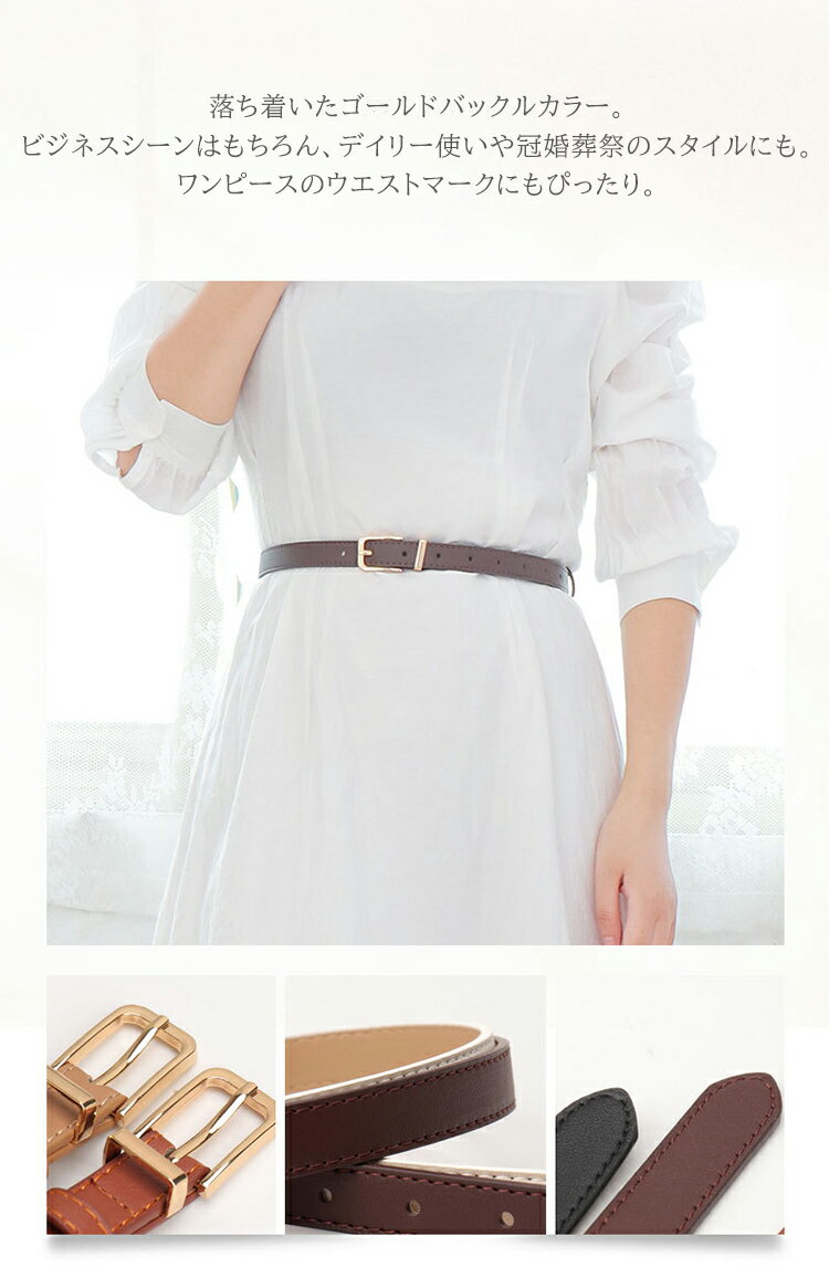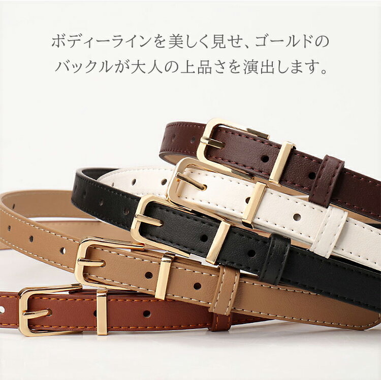 【期間限定:50%OFFクーポン利用で990円!】【一部即納】ベルト レディース 細ベルト 穴調整可能 可動式ループ シンプル PUレザー レザー風 高見え スクエアバックル ゴールド おしゃれ フォーマル ビジネス 通勤 通学 お洒落 オフィス プレゼント 5色 送料無料