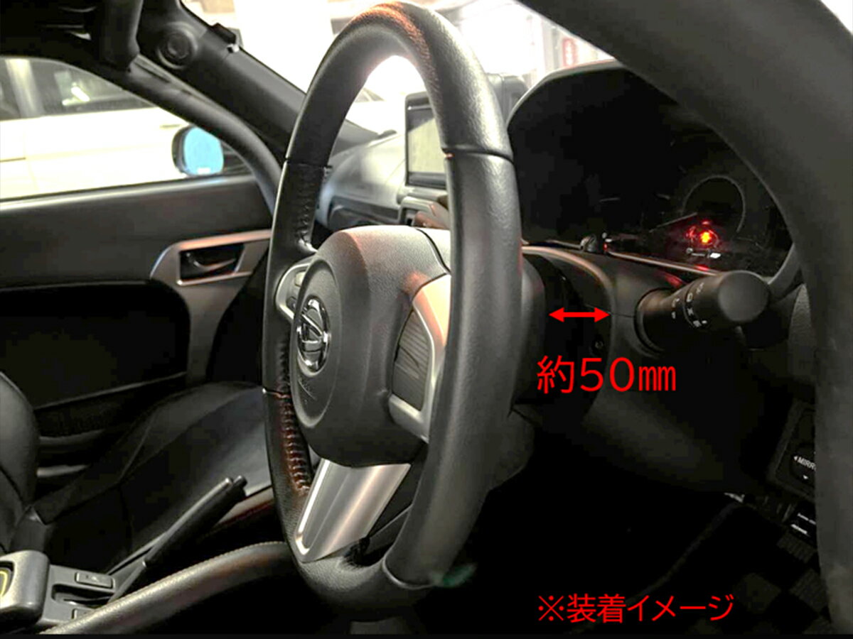 ■特長 ※ウィンカーレバー・ワイパーレバーとの距離がステアリングスペーサー分(約50mm)離れます 約50mm ステアリングを手前に移動させる、ステアリングスペーサーです 純正エアバッグとスイッチ類がそのままご使用いただけます ドライビングポジションが改善されることで、操作感が向上し、疲労感も軽減します 材質:ジュラルミン(A7075)+クロムモリブデン鋼(SCM415)を使用 保安基準適合品 ■適合 車名 型式 年式 備考 コペン LA400K/A 14.06〜