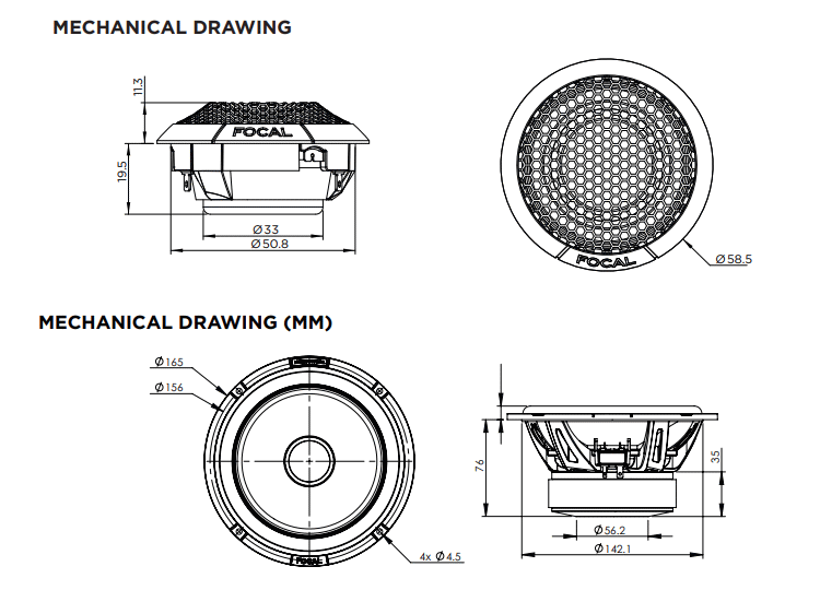 —K2 Power EVO— 「K2 Power EVO」(ケーツー パワー エボ)は、FOCALカースピーカーの象徴というべき黄色のアラミドファイバーコーンを継承する伝統のシリーズ“K2 Power”の第4世代モデルです。 取付奥行寸法58mm(ウーファー部)の薄型モデルを含む4機種を取り揃えた165mm2ウェイ・コンポーネントキットをはじめ、165mm3ウェイ・コンポーネントキットと100mm2ウェイ・コンポーネントキットを各1機種、165mm2ウェイ・コアキシャルキット1機種、そしてサブウーファー3機種の計10機種をラインアップ。 また「ES 165 KX2E」と「ES 165 KX3E」には、新開発の大口径M型断面アルミ/マグネシウムコーンを採用した“K2 Power M”シリーズの革新的な32mmトゥイーター「FRAK」を投入しました。 そのダイナミックでパワフルな音質はもちろんのこと、ユニットフレームやネットワークケースに至る細部のデザインまでもいっそう洗練され、一足先にリリースされた“K2 Power M”シリーズとともに、歴代最高のK2 Powerラインアップがここに完成しました。 なお、「K2 Power EVO」 は前モデルおよび“K2 Power M”シリーズと同様、全機種がフランス本国で企画・開発・生産されます。 ■仕様 再生周波数帯域 55Hz〜32kHz 定格入力/最大入力 120W/240W インピーダンス 2Ω 出力音圧レベル 92.5dB(2.83V/1m) ネットワーク 6-12/12-18dB(3kHz) ウーファー 165mm TMD採用K2サンドウィッチコーン トゥイーター 32mm TMD採用Mインバーテッド・アルミ/マグネシウムコーン 取付け穴口径 142.1mm 取付け奥行 76mm