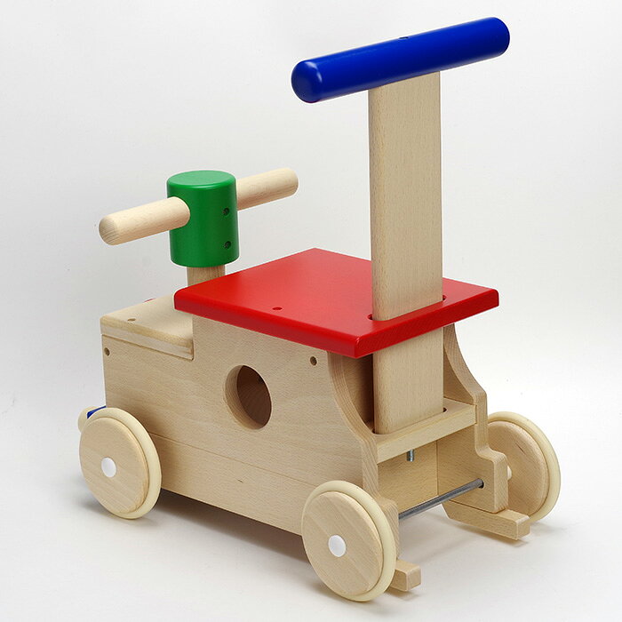 可愛い汽笛の音を楽しみながら赤ちゃんの運動能力を高められる日本製の木製乗用玩具。歩き始めは手押し、後で把手を外して乗用に出来る木のおもちゃ車です。 昔から愛され続けて発売以来32年のロングセラー商品で、とても信頼できる一品です。 ■注記:把手は組み手て式です。 ■材質:天然木(ブナ)、ゴム ■組み立てサイズ:D21×W38.5×把手高さ39.5 cm ■パッケージサイズ:D22×W38.5×H29.5 cm ■重量:2.4 Kg ■耐荷重:25 Kg ■対象年齢目安:1.5歳〜 ■製造元:平和工業株式会社(日本) MOCCOシリーズ ■型番:W-86A ■生産国:日本 お誕生日プレゼントや出産祝いギフト、クリスマスプレゼントなどにもお勧めです。| 森のカラフルロコ|日本製 乗用玩具 可愛い汽笛の音を楽しみながら運動能力を高められる! 1歳前後の掴まり立ちできるころから自ら押して遊んだり、乗ることもできる、とても可愛らしいフォルムの日本製の汽車です。動かすと内蔵されたフイゴと笛によりポーポーと味わいのある汽車の音が出て、お子さんは大喜びです。 昔から愛され続けて発売以来32年のロングセラー商品で、とても信頼できる一品です。 ■注記:把手は組み手て式です。 ■材質:天然木(ブナ)、ゴム ■組み立てサイズ:D21×W38.5×把手高さ39.5 cm ■パッケージサイズ:D22×W38.5×H29.5 cm ■重量:2.4 Kg ■耐荷重:25 Kg ■対象年齢目安:1.5歳〜 ■製造元:平和工業株式会社(日本) MOCCOシリーズ ■型番:W-86A ■生産国:日本 名入れを無料で承ります。(営業日12時まで当日出荷できます。) プレートの貼付けなので、ご自分で好きな箇所に貼付けることもできます。 ご希望の場合は「貼付けずに添付希望」とご記入ください。 名入れ記入欄は購入手続きページ内にあります。 Q&A Q:名入れを把っ手に直接、焼き込んでもらうことはできますか? A:直接焼き込むことはできません。ネームプレートを把っ手に貼付けることはできますが、あまり好ましく無いと思います。なぜなら、少し大きくなってまたがるようになると、把っ手は外したほうがよくなるので、折角の名入れが見えなくなってしまいます。 車のナンバープレートと同じように前部に付いている方が子供さんも喜ばれるのではないでしょうか。 大きくなったら把手をはずして つかまり立ちする為の把手は、お子様が自分で乗れるようになったら、取り外してあげましょう。乗りやすくなり、自分で足けりして走り回る楽しさを味わいながら、運動能力を高めてくれます。 タイヤにはゴムリングが付いていて床を傷めず静かに走行できます。 使い終わったらインテリアとして飾っておいても可愛いですね。 汽笛が聞こえる フイゴ笛が内蔵されていて、車輪の回転に応じてポーポーと愛らしい汽笛音が鳴って、子供は大喜び! 汽笛の音をお聴き下さい 安全対策も万全です。 車体後部には安全対策として、ひっくり返り防止のストッパーが設けられていて、車体が後ろに傾くと、ストッパーが床に着いて前に押し出されるのを止めてくれます。 指を挟み込まない! タイヤと車体の間に指を突っ込んでも怪我しないように、12mmの隙間が確保されるスペーサーが車軸に組み込まれていて安全です。 緩衝ゴム付き フロント部分には大きな緩衝ゴムが付いていて、家具や壁にぶつけた時の衝撃を和らげてくれます。 把手は組み立て式 把手は車体後部の孔に差し込んで、1本のネジで簡単に取り付け取り外しができ、かつ強固に取り付けられます。蝶ネジなので、ドライバーは不要で手で締められます。 製品仕様 ■商品名:森のカラフルロコ ■注記:把手は組み手て式です。 ■材質:天然木(ブナ)、ゴム ■組み立てサイズ:D21×W38.5×把手高さ39.5 cm ■パッケージサイズ:D22×W38.5×H29.5 cm ■重量:2.4 Kg ■耐荷重:25 Kg ■対象年齢目安:1.5歳〜 ■製造元:平和工業株式会社(日本) MOCCOシリーズ ■型番:W-86A ■生産国:日本 森のパズルバス 森のカラフルバス 森の汽車ポッポ 森のカラフルロコ 森のピイポートレイン これ以外の手押し車・乗用玩具はこちらへ