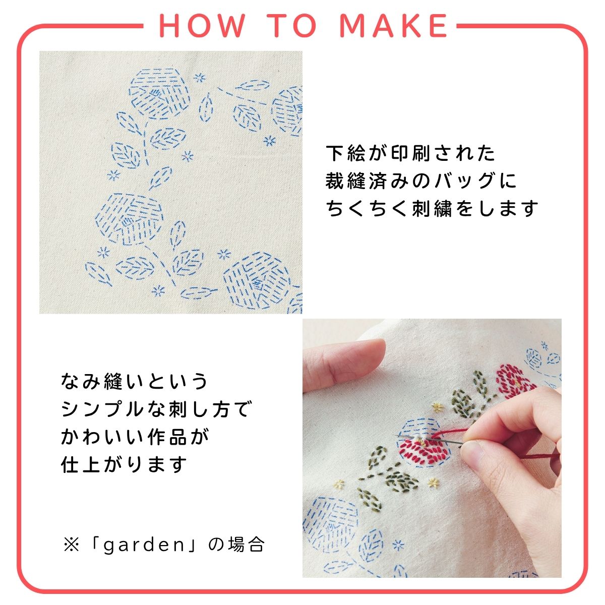【 刺し子キット 】 裁縫済み 刺し子のバッグ手作りキット ( fish / pencil / rain / cobblestone / tree / garden )| 手づくり キット 刺子 伝統 文様 手芸キット トートバッグ 刺繍 刺しゅう
