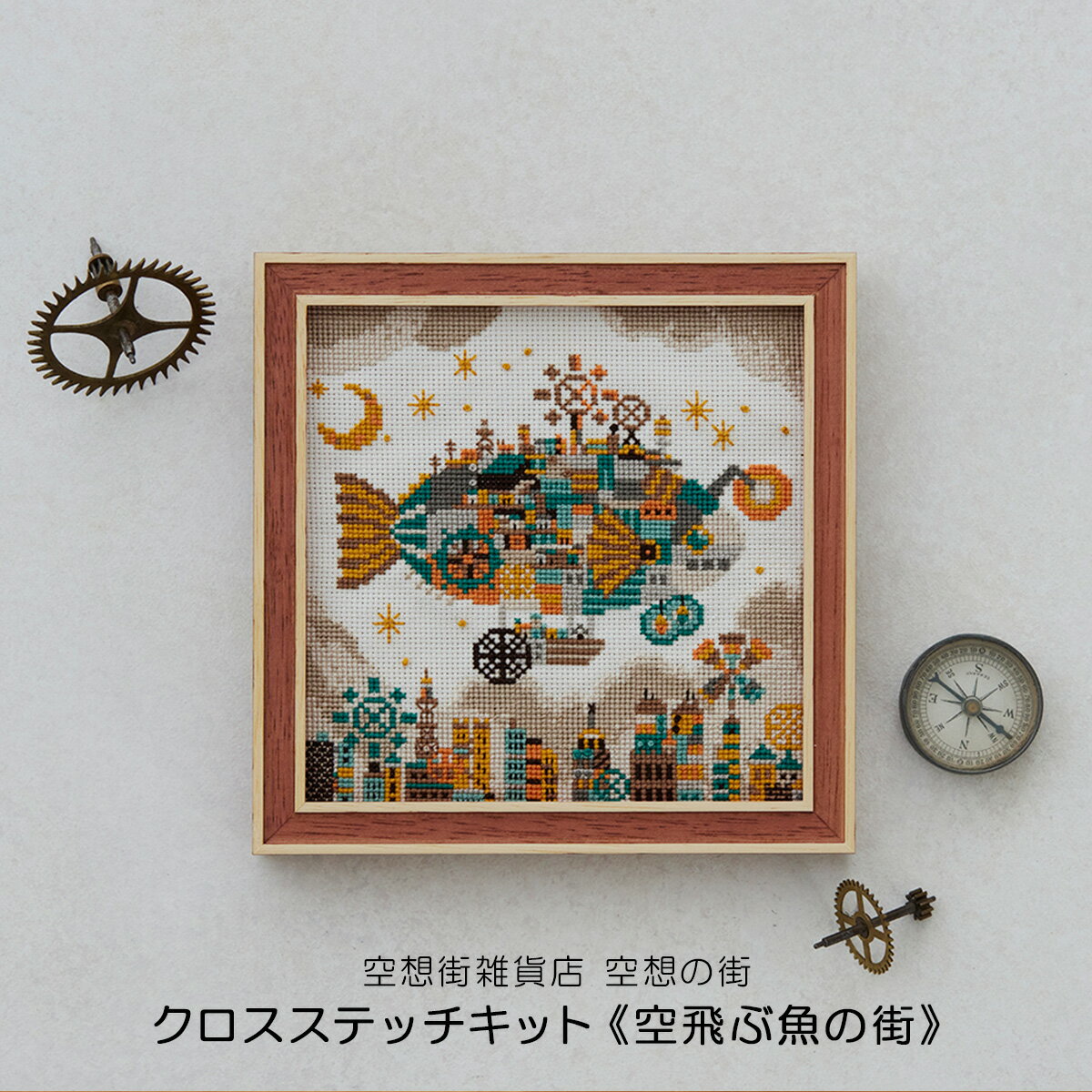 【 刺繍キット 】空想街雑貨店 空想の街 クロスステッチキット ( 空飛ぶ魚の街 / レモンの都 / モノクロームの街 )| クロスステッチ 刺繍 手芸 キット 手芸キット 手作り ハンドメイド 刺しゅう ししゅう インテリア