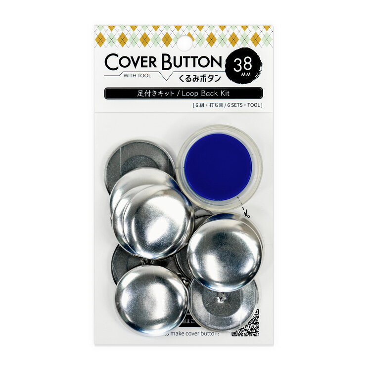 この商品は『クリックポスト』のご利用が可能です。 対象外の商品と一緒に、もしくは適用可能な個数を超えてご注文いただいた場合は、通常の配送プランでのお届けになります。あらかじめご了承ください。 詳しくはこちらの『お届けについて』をご覧ください。※クリックポスト(メール便)をご希望のお客様は、上記の内容に同意されたものとして発送させていただきます。 商品仕様 素材 シェル・バックパーツ:アルミニウム 打ち具:プラスチック/シリコンゴム 生産国 シェル・バックパーツ:USA 打ち具:CHINA 商品説明 くるみボタンの打ち具、シェル、バックパーツのセットです。 【セット内容】 ●38mmくるみボタン打ち具 1個 ●38mmくるみボタンシェル 6個 ●38mmくるみボタン足付バックパーツ 6個