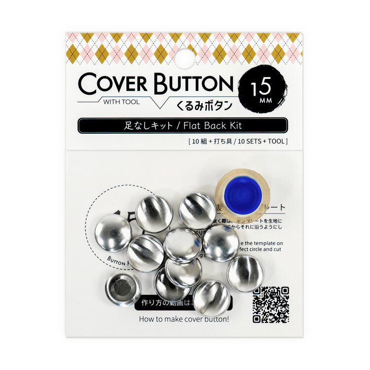 15mm くるみボタンキット( 足なしタイプ / 打ち具付き ) 10組入