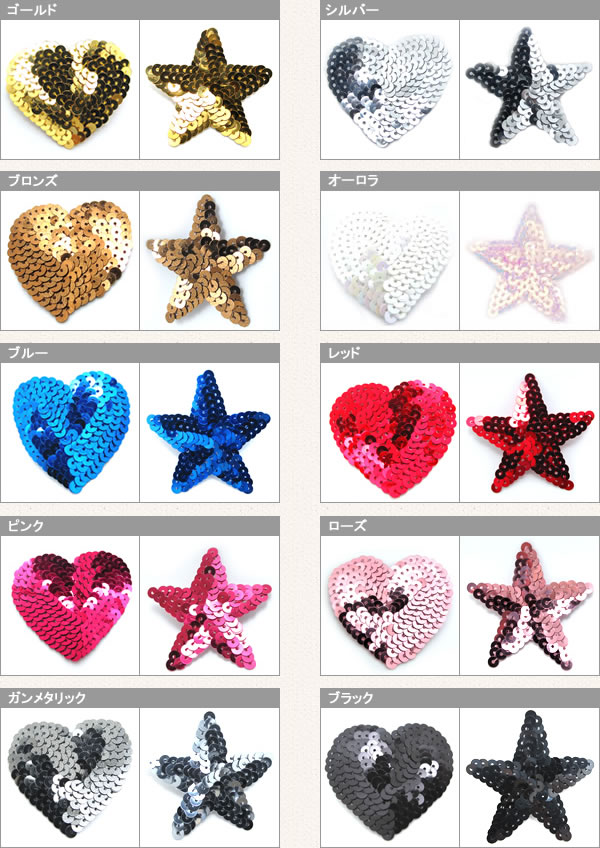 とってもかわいい星とハートの スパンコールアップリケ。 選べるカラーは全部で10色☆ 入園・入学の持ち物の目印はもちろん、部活マスコットやフェルトマスコット作りにもオススメです! Tシャツや布かばんに組み合わせて自分だけのオリジナルに マスクのデコレーション♪ 入り数 1枚 SIZE 約4.5cm 素 材 スパンコール 接着方法 1.モチーフをバランス良く接着する布の上に配置してください。 2.上からあて布をしてください。 3.アイロンの温度を高温にして軽く押さえて全体を仮止めしてください。 4.さらにアイロンで10-20秒両手で強く押さえて圧着してください。 5.よく冷めてから接着の具合を確かめて、接着があまい様ならもう一度4の工程を繰り返してください。