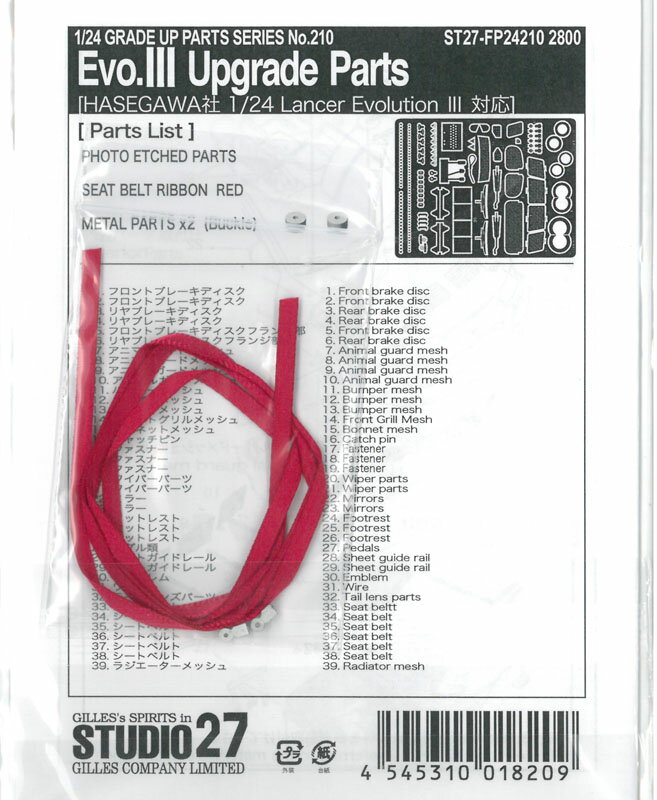 1/24 Evo.lll アップグレードパーツ(H社1/24 Lancer Evolution lll対応)【スタジオ27 ST27-FP24210】