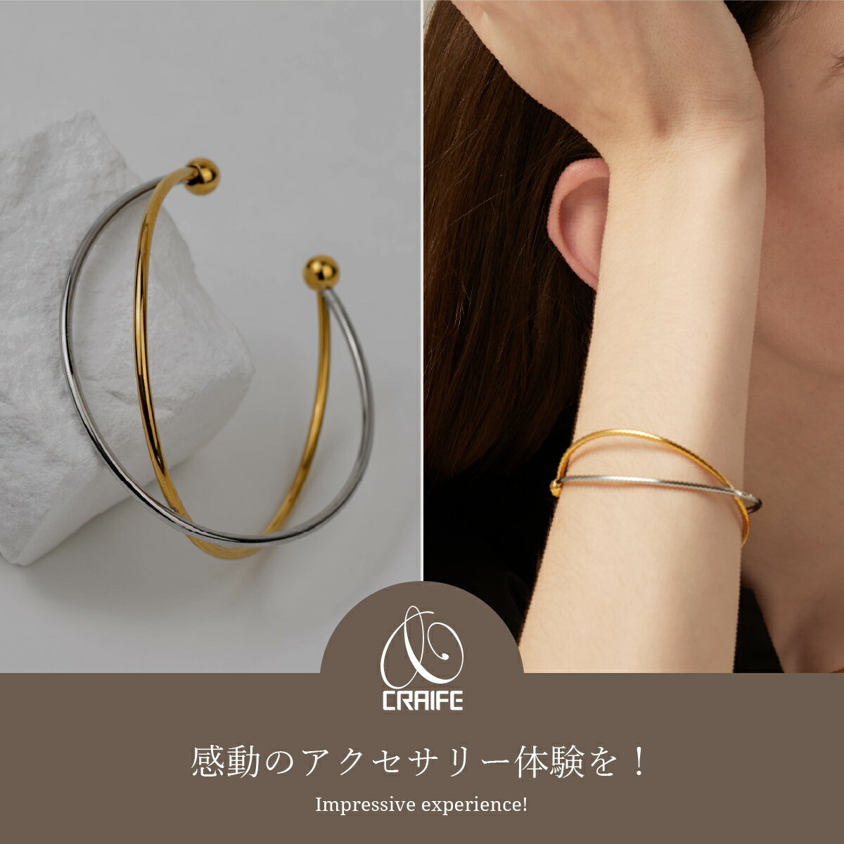 【P10倍+最大30%OFFクーポン配布中】 バングル サージカルステンレス 316L 金属アレルギー対応 18K コーティング ブレスレット レディース 大人 かわいい シンプル エレガント ジュエリー バイカラー ゴールドxシルバー 送料無料 プチプライス高見え CRAIFE