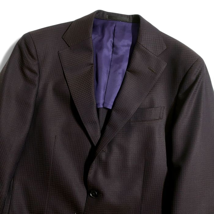 RICHIESTA リキエスタ 大賀 日本製 ウール混 シャドー マイクロチェック 段返り3B 1タック シングルスーツ ジャケット スラックスパンツ 188A9806 パープル AL▲074▼50210k12