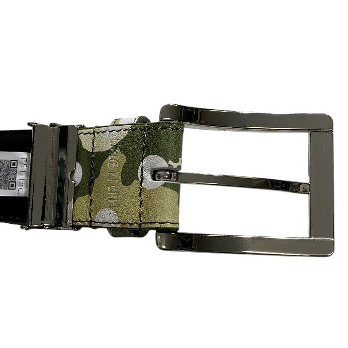 【中古】【新古品・未使用品】PEARLY GATES パーリーゲイツ ゴルフ カウレザー 牛革 本革 カモドット柄 迷彩柄 スクエアバックル レザーベルト 053-2182500 定価1.7万 ミックスグリーン ホワイト FR ▲019▼50312w03