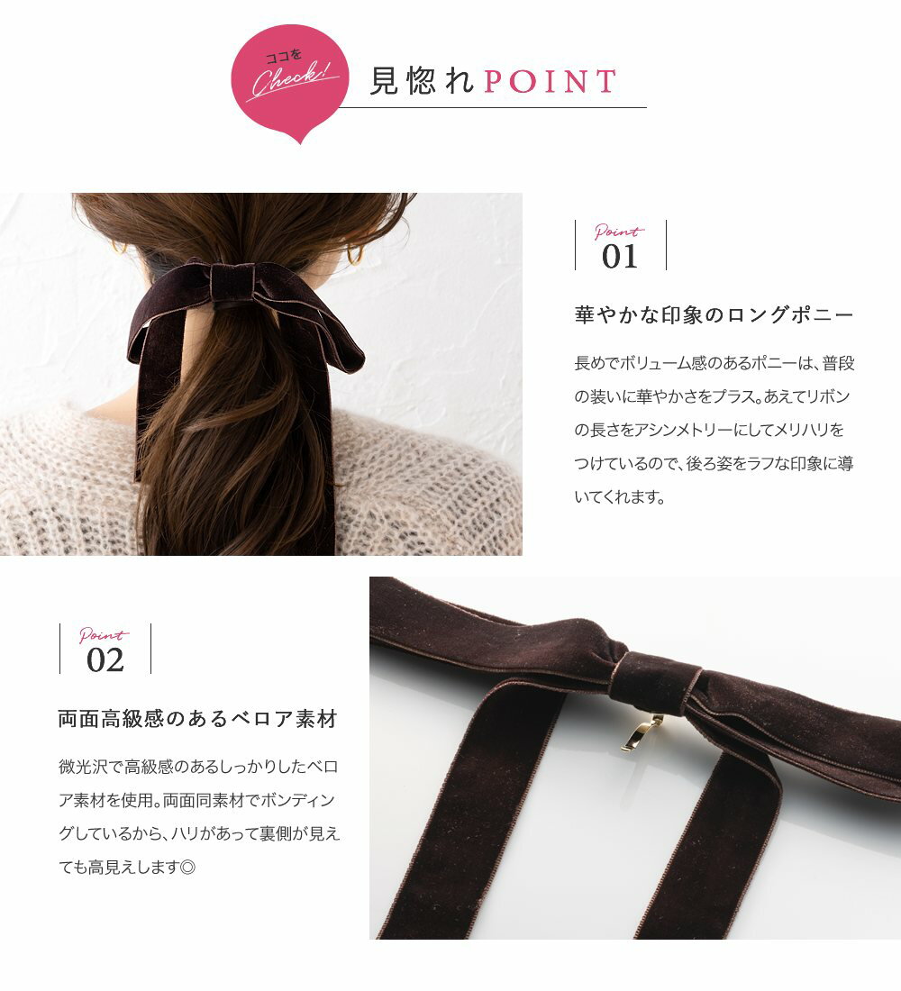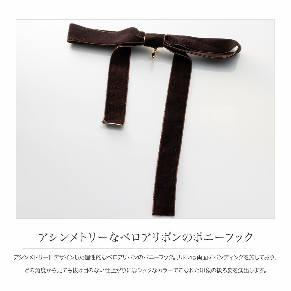 【全品送料無料×P最大47倍!】ポニーフック ベロア アシンメトリー アシメリボン ベルベット ヘアフック ヘアカフス ヘアゴム おしゃれ ヘアアクセサリー 髪留め まとめ髪 ブラック ダークブラウン