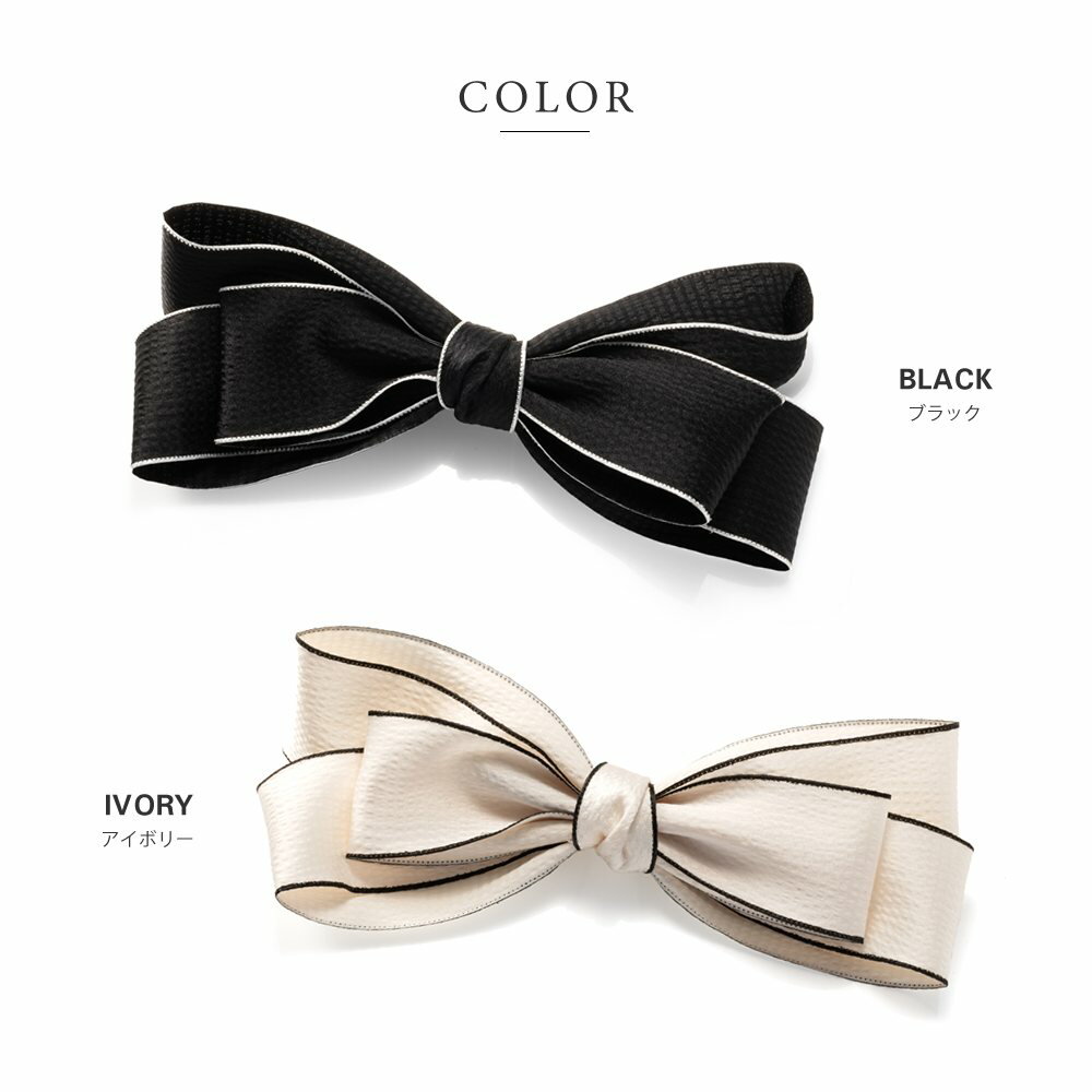 【全品送料無料×P最大47倍!】 バレッタ ヘアクリップ ヘアアクセサリー 髪留め まとめ髪 リボン シアサッカー バイカラー モノトーン 大きめ 大人 ブラック アイボリー