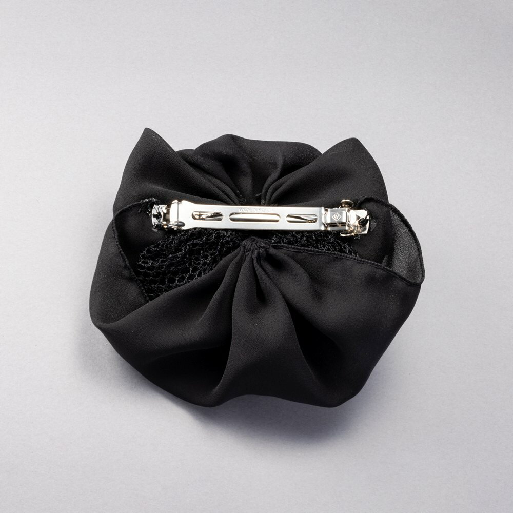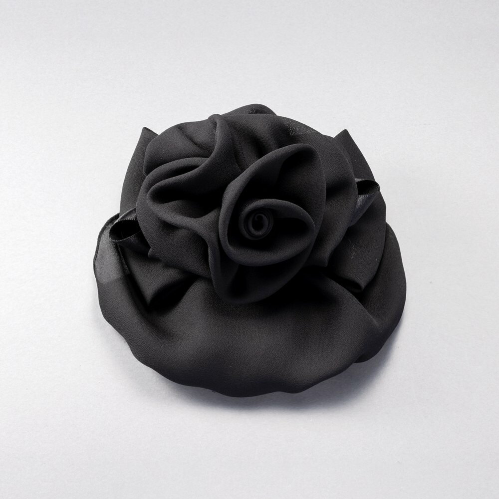 【2点10%OFF★クーポン配布中】 フラワー リボン 立体的 お団子 シニヨン バレッタ まとめ髪 髪留め お団子ネット お団子カバー ネット付きバレッタ 簡単 無地 ポニーテール ヘアアレンジ 大人 黒 ブラック