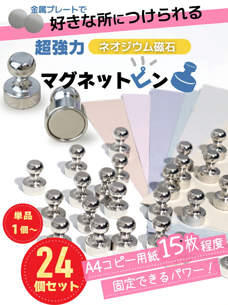 【数量限定★10%OFF】在庫限り マグネット ピン 超強力 マグネットピン ネオジム 磁石 フック ピンク 6個 12個 24個 セット まる 強力 黒 マグネットフック ピン型 白 かわいい カラー おしゃれ ピング シルバー キッチン ピンマグネット スチール 浴室
