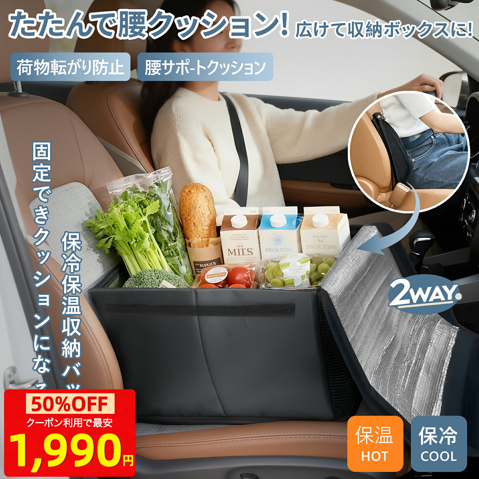 【 2点購入 50%OFF!30日23:59迄】【保温 保冷 フタ付き】【2点お得セット】車 クッション収納ボックス シートボックス 折りたたみ コンパクト 大容量 助手席収納 ドライブグッズ カーシート クッション 収納ケース 落下防止 ボックス カー用品 トラベル おしゃれ