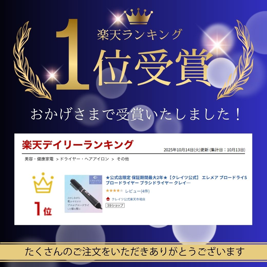 ★公式店限定 保証期間最大2年★【クレイツ公式】 エレメア ブロードライS ブロードライヤー ブラシドライヤー クレイツイオン ドライヤー くるくるドライヤー ボリュームアップ ブラシ付ドライヤー ヘアケア スタイリング 美髪 ツヤ 正規品 クレイツ SBD-G01G プレゼント