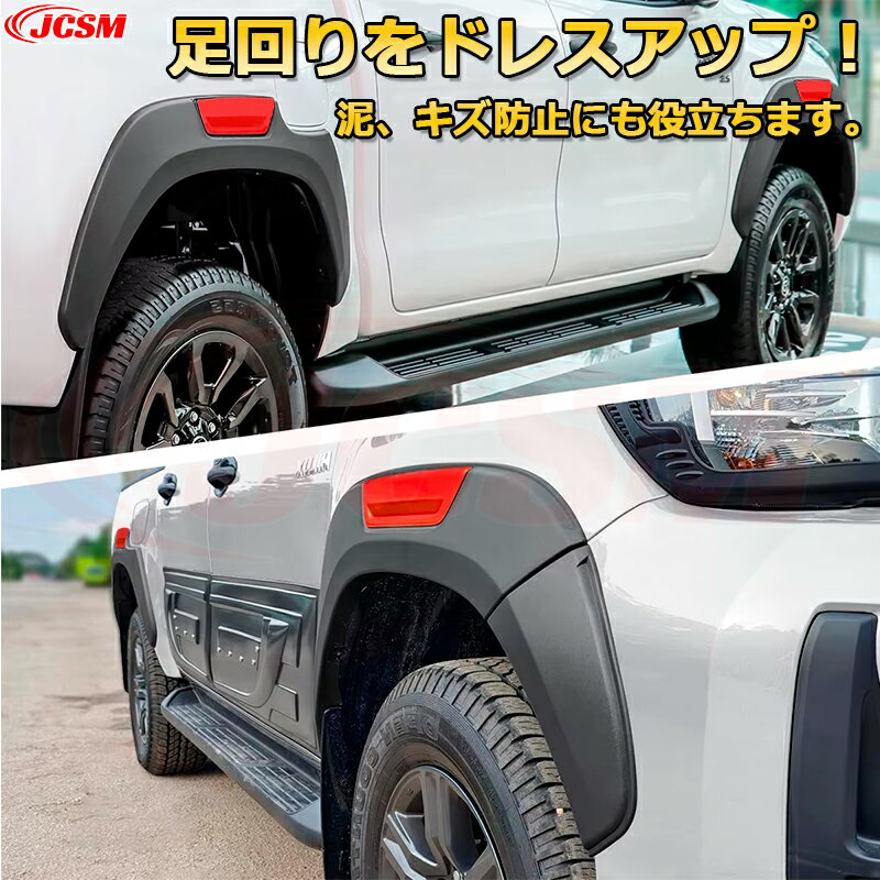 オーバーフェンダーセット 【トヨタ ハイラックス 120系後期 X】専用 ピックアップ ワイドフェンダー 高品質ABS製 外装 飾り ドレスアップ カーカスタムパーツ 黒 6Pセット ボルトナット付属 HILUX GUN125 X 2020