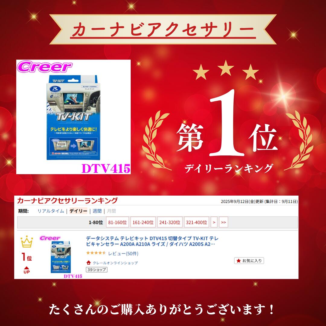 【当店ポイント最大48倍★要エントリー 20日20時~】データシステム テレビキット DTV415 切替タイプ TV-KIT テレビキャンセラー A200A A210A ライズ / ダイハツ A200S A210S ロッキー用 ディスプレイオーディオ付車 走行中にTVが見られる!