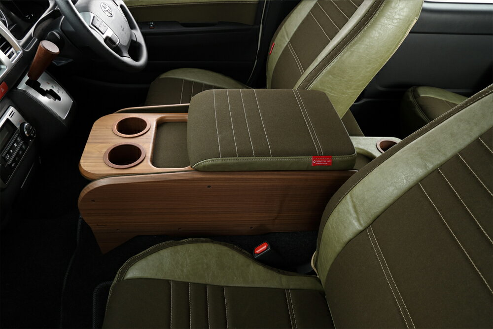 クラフトプラス センターコンソールボックス st.1 ブルックリンタイプ1 トヨタ 200系 ハイエース 1/2/3/4/5/6/7型 標準ボディ 無垢材 運転席 助手席 ドリンクホルダー 収納BOX 日本製 車検対応 内装 カスタム パーツ