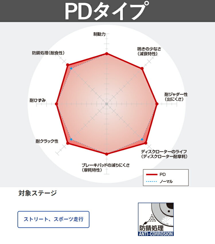 商品説明 ・DIXCELのブレーキローター PD type、PD3754024Sです。 ・現在お使いのローターを耐食性を高めたハイクオリティ+αに変更したい方おすすめのブレーキローターです。 ・従来の製品精度、表面硬度、素材含有量(カーボンやシリコン等の含有率)に加え、ディクセル独自の防錆という加工を製品の基準に設定しました。ディクセルローターは全品防錆コーティングをしております。 ・精度面は、高レベルで、平行度、厚み偏差などを設定しており、鳴きや振動を抑制します。 ・国産車から輸入車、軽自動車からミニバン/SUVまで幅広いラインアップです。 商品仕様 ●枚数:2枚 ●走行フィールド:ストリート~スポーツ走行 ※ブレーキローターは消耗品なので定期的な交換をおすすします。 ※防錆コーティングは錆の発生を抑制するもので完全に阻止できるものではございません。 また、上記写真の左の仕様では、パッドの当たらない部分が錆びる場合があります。 鋳鉄製品である以上、完全防錆は不可能ですので万一錆が発生したとしてもクレーム・交換 などには応じかねますので予めご了承下さい。 タグ1:【SBT01040】/タグ2:/タグ3:/タグ4:/タグ5:※画像はイメージです。ディスクがベンチレーテッドであるか、ソリッドかは車両の純正状態に準じます。 ※詳細な適合につきましてはメーカーページをご確認ください。