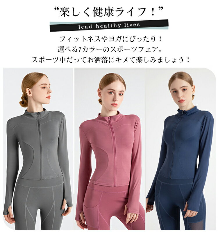 スポーツウエア トップス 長袖 ヨガ フィットネス パーカー レディース ヨガウエア 指穴付き フルジップ 大きいサイズ フィットネスウエア ジップアップ ジムウェア トレーニングウェア 運動着 コート おしゃれ シンプル トレーナー