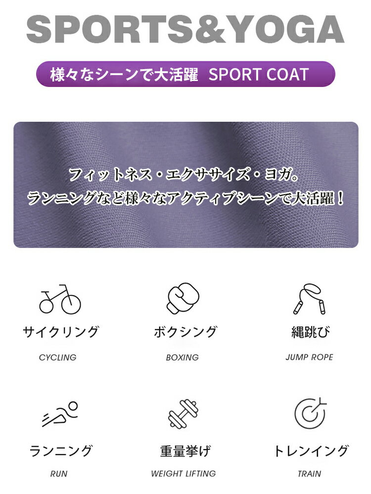 ▼ 商品名(検索キーワード)▼ ヨガウェア ヨガウエア ヨガ服 スポーツウェア スポーツウエア フィットネスウェア トレーニングウェア ズンバウェア ランニングウェア ダンスウェア ダンスウエア ホットヨガウェア アクティブウェア アクティブウエア ジムウェア 普段使い ジャージ ウェア ウエア 服 ふく 二の腕 ウエスト ヒップ コーディネート コーデ トップス 長袖 重ね着 運動着 パーカー コート トレーナー アウター ジャケット 長め丈 ロング丈 ショート丈 ハイネック 指穴 指穴付き フード付き サムホール フルジップ ジップアップ ファスナー ファスナー付き ルームウェア 部屋着 体型カバー タイト 伸縮 伸縮性 伸縮性あり ストレッチ ストレッチ素材 着やせ 着痩せ 着圧 ふんわり 通気性 通気性抜群 吸湿速乾 吸汗速乾 速乾性 速乾 吸汗 動きやすい 動き易い おしゃれ オシャレ お洒落 かわいい 可愛い 韓国 シンプル 無地 注目 レディース 女性 yoga ヨガ ホットヨガ おうちヨガ 家ヨガ お家でヨガ ジム スポーツ エクササイズ ピラティス フィットネス トレーニング ランニング ウォーキング ジョギング マラソン ダンス エアロビクス 宅トレー ズンバ ワークアウト 体操 筋トレ キントレ リラックス サイクリング キャンター 大きいサイズ オーバーサイズ 小さい S M L XL XXL XXXL LL 2L 3L 4L 春 夏 秋 冬 春夏 秋冬 オールシーズン 新作 人気 おすすめ プチプラ ぷちぷら ブランド ダイエット 純色 単色 演出服 ステージ 練習用 体操 黒 女子 女子用 女児 女児用 女の子 女の子用 girl girls ガール おんなのこ ガールズ レディース 女性 女性用 年少 学生 中学生 高校生 大学生 ジュニア ティーンズ 彼女 彼氏 友人 大人 大人用 家族 姉 兄 弟 妹 娘 嫁 妻 奥さん 旦那さん 母 父 お母さん お父さん 御母さん 御父さん 義母 義父 義理 ママ ぱぱ パパ ママ友 ミセス ペア おそろい お揃い ペアルック 20代 30代 40代 50代 60代 70代 20歳 30歳 40歳 50歳 60歳 70歳 お返し お礼 ご挨拶 初売り お花見 入学式 新生活 文化祭 学園祭 お祝い 内祝い 結婚祝い 婚約祝い 入学祝い 卒業祝い 合格祝い 就職祝い 退職祝い 入園祝い 進学祝い 出産祝い 退院祝い 成人祝い ボーナス祝い 七五三祝い 還暦祝い 長寿祝い 優勝祝い 受賞祝い 当選祝い 引っ越し祝い 引越し祝い 引越祝い 新築祝い 栄転祝い 昇進祝い 誕生日祝い 餞別プレゼント お中元 お歳暮 お年賀 お正月 暑中見舞い 残暑見舞い 七夕 敬老の日 成人の日 成人式 父の日 母の日 結婚記念日 春物入荷 夏物入荷 秋物入荷 贈物 贈り物 誕生日 お誕生日 彼女にプレゼント こどもの日 プレゼント ギフト クリスマス ホワイトデー バレンタインデー バースデーITEM INFO 仕様 ・サイズ: ・S-参考体重42.5~47.5kg ・M-参考体重47.5~52.5kg ・L-参考体重52.5~57.5kg ・XL-参考体重57.5~65.0kg ・2XL-参考体重65.0~72.5kg ・3XL-参考体重72.5~80.0kg 素材 ・ポリエステル82.5%+スパンデックス17.5% カラー ・ピンク ・グレー ・ブルー ・パープル ・オレンジ ・ネイビー ・ブラック 特徴 ◆ 露出を控えたいときに便利な、フィットネス・ヨガ・スポーツ用のフロントジップトップス。 ◆ トレーニングやレッスン以外の移動時間などに、1枚羽織るものがあると便利です。 ◆ 適度にタイトなシルエットな為、トレーニングやポーズの邪魔をしません。 ◆ 体にフィットしボディラインを綺麗に見せ、女性らしい印象にしてくれます。 ◆ 袖はサムホール(指穴)付きで、日焼けを避けたい方におすすめ。 ◆ 冷房の風や日焼けを避けたい夏にも使用でき、1年を通して持っておくと便利な1着です。 ◆ 汗をかいてもすぐ乾いてサラサラに。不快な張り付きもなく、常に快適な状態を保ちます。 ◆ シワになりにくく軽い。小さく畳んでコンパクトに、荷物にならないから、どこでも持っていけます。 ご注意 ● サイズに±2cmの若干誤差が生じる場合があります、予めご了承ください。 ● 商品の色は、モニターの発色具合により、実際の商品と異なって見える場合があります。 ● ご注文頂くタイミングによっては、ホームページ上で在庫がある商品も欠品になる場合がございます。 ● 入荷待ちの商品に関しましては、別途メールにてご連絡差し上げます。ご了承のうえご注文下さいます様お願い申し上げます。 ● 当店の商品は全て国内から配送されます。 ● 国内配送の商品は国内でのお買い物と同じく消費税が発生いたします。関税はかかりません。 製造国 中国製(日本の企画により厳格に生産されています。) ※重要※<オプション品ご購入の注意点> 楽天決済のシステム上、追加料金が自動加算されません。注文確定後に金額修正し、メールにてお知らせしますが、ご確認ください。