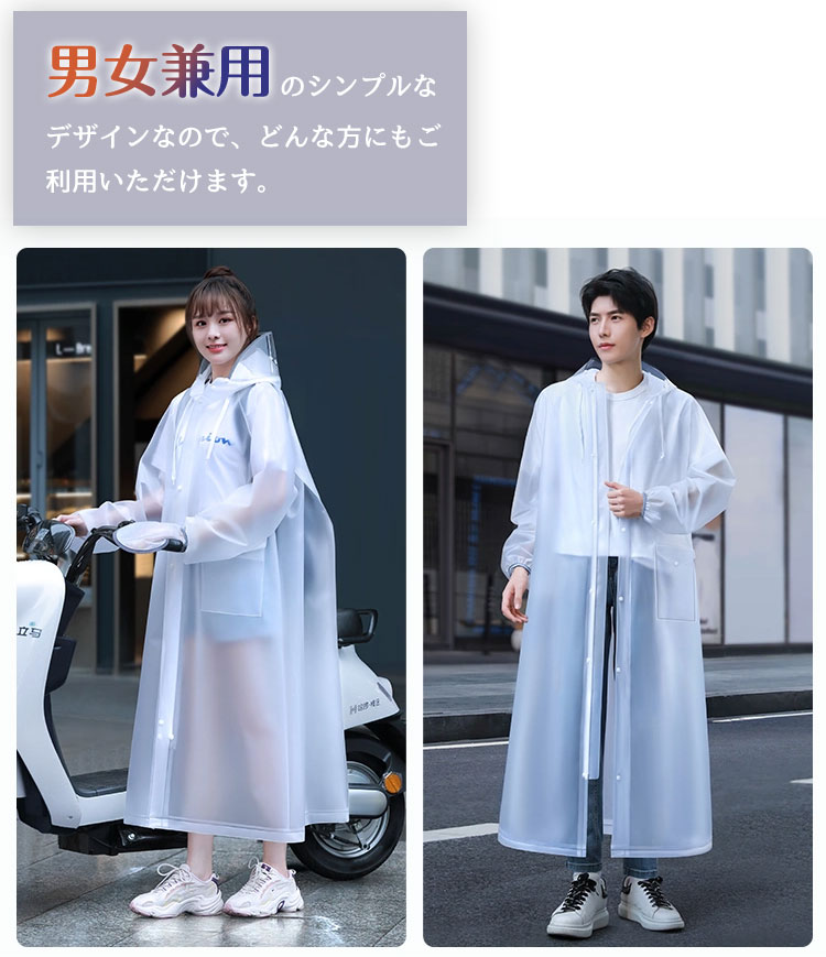 ▼ 商品名(検索キーワード)▼ レインコート 自転車 ポンチョ 防水 通学 通勤 レディース メンズ リュック リュック対応 ロング レインウェア ボタン ポケット 透明 つば 付き かわいい おしゃれ アウトドア キャンプ 防災 バイク ママ 送迎 ロング丈 レインポンチョ 男女兼用 男性用 女性用 レジャー 雨具 バイク カッパ 自転車用 バイザー カッパ 台風 防災 グッズ 雪 大きく見えやすいツバ 撥水 野外フェス 保育園 幼稚園 20代 30代 40代 50代 60代 70代 20歳 30歳 40歳 50歳 60歳 70歳 お返し お礼 ご挨拶 初売り お花見 入学式 新生活 文化祭 学園祭 お祝い 内祝い 結婚祝い 婚約祝い 入学祝い 卒業祝い 合格祝い 就職祝い 退職祝い 入園祝い 進学祝い 出産祝い 退院祝い 成人祝い ボーナス祝い 七五三祝い 還暦祝い 長寿祝い 優勝祝い 受賞祝い 当選祝い 引っ越し祝い 引越し祝い 引越祝い 新築祝い 栄転祝い 昇進祝い 誕生日祝い 餞別プレゼント お中元 お歳暮 お年賀 お正月 暑中見舞い 残暑見舞い 七夕 敬老の日 成人の日 成人式 父の日 母の日 結婚記念日 春物入荷 夏物入荷 秋物入荷 贈物 贈り物 誕生日 お誕生日 彼女にプレゼント こどもの日 プレゼント ギフト クリスマス ホワイトデー バレンタインデー バースデーITEM INFO 仕様 ・サイズ (約)▼ - M:着丈115cm バスト120cm 袖丈73cm 推奨身長150-160cm - L:着丈120cm バスト126cm 袖丈76cm 推奨身長155-165cm - XL:着丈125cm バスト132cm 袖丈79cm 推奨身長165-170cm - 2XL:着丈130cm バスト138cm 袖丈82cm 推奨身長175-185cm 素材 ・EVA カラー ・ホワイト ・カーキ ・ブラック ・ブルー ・イエロー ・ピンク ・パープル 特徴 ◆ 雨天時、自転車に乗る際に役立つ大きいつば付きの「自転車用レインコート」。 ◆ 透明つばが付つばおり、雨の日でも周りがはっきり見えます。 ◆ 防水生地を採用し、手触りはすべすべで触り心地がよく、丈夫で防水力も高いです。大雨でも心配いらないのです。一年間にご使用いただける重宝です。実用性も適用性も素晴らしいです。 ◆ 雨風の侵入を防ぐゴム入り袖口は、雨が入りにくい仕様です!少々サイズが大きめのコートを着た時にも身体にフィットしやすいです。手軽なウィンドブレーカーとして、作業、ウォーキングに最適です。 ◆ グローブ付きの袖口デザイン、雨の時は袖口を下ろしてグローブとして使用でき、指を濡らすことなく保護できます。 ◆ 物を入れて取り出しやすいポケットがあり、ボタン式なのでポケットに水が入る心配もありません。 注意点 ● サイズに±2cmの若干誤差が生じる場合があります、予めご了承ください。 ● 商品の色は、モニターの発色具合により、実際の商品と異なって見える場合があります。 ● ご注文頂くタイミングによっては、ホームページ上で在庫がある商品も欠品になる場合がございます。 ● 入荷待ちの商品に関しましては、別途メールにてご連絡差し上げます。ご了承のうえご注文下さいます様お願い申し上げます。 ● 当店の商品は全て国内から配送されます。 ● 国内配送の商品は国内でのお買い物と同じく消費税が発生いたします。関税はかかりません。 製造国 中国製(日本の企画により厳格に生産されています。) ※重要※<オプション品ご購入の注意点> 楽天決済のシステム上、追加料金が自動加算されません。注文確定後に金額修正し、メールにてお知らせしますが、ご確認ください。