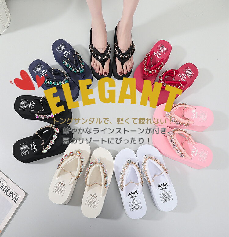 新作! ビーチサンダル サンダル 厚底 レディース おしゃれ 浴衣 厚底サンダル ウエッジソール トングサンダル 鼻緒付 美脚 かわいい 痛くない 軽い 歩きやすい ビジュー 滑り止め 柔らかい 履き心地 海 アウトドア 小さいサイズ 大きいサイズ